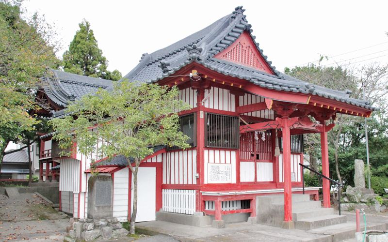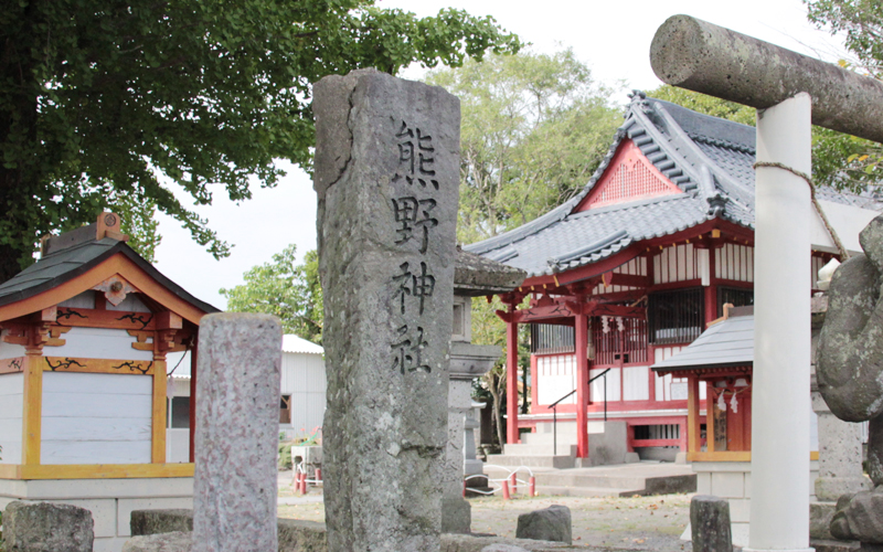 熊野神社は、文禄4(1595)年に島津義久が富隈城の築城時に勧請し、社殿が建立された。浜之市の鎮守で、祭神はイザナギノミコトとコトサカオノカミ、ハヤタマオノカミ。