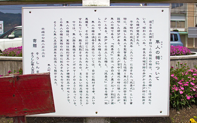 1963年(昭和38年)、奈良平城京跡の井戸から出土している。鋸歯の紋様には、呪力の意味があり、上下二重につけられた紋様が鋭い歯先を持って噛み合わされるように描かれ、相手に脅威を与えた。