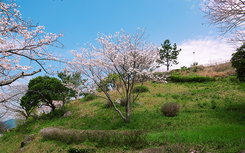 桜の名所としても人気で、シーズン中には約100本もの桜が咲き、観光客を魅了している。