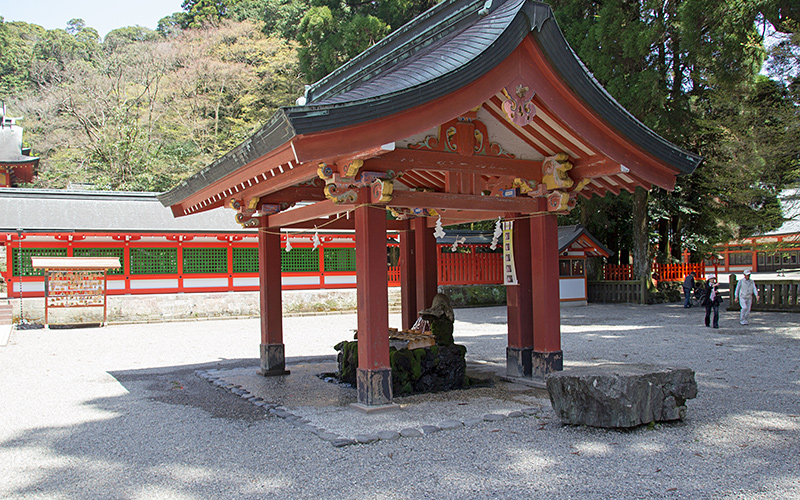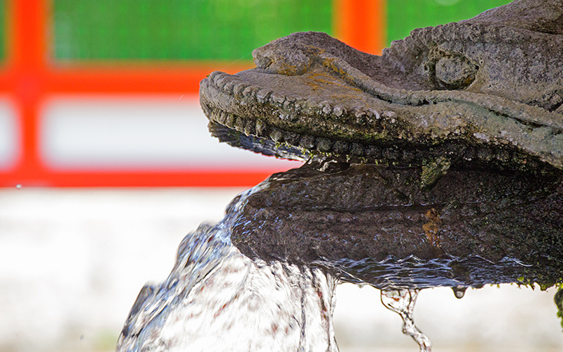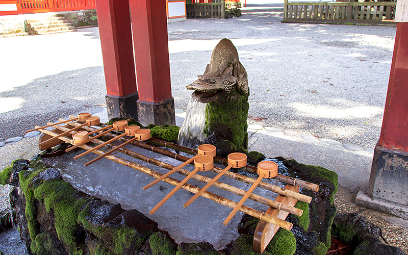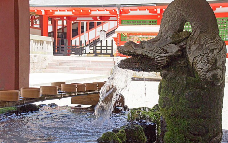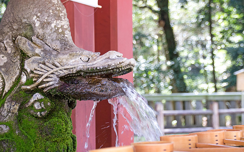龍の吐水口は貴重な石細工で、社務所の手水鉢と同じく肥後の石工である岩永三五郎作と言われる。