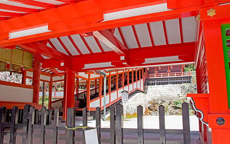 薩摩藩主島津吉貴の寄進で、正徳5年(1715年)に建立された。社殿はいずれも朱塗りの華麗なものである。特に本殿は内部も豪華に装飾され、柱、梁、長押などはすべて朱漆塗りとした上に要所を彩色文様や鍍金の飾り金具で装飾し、壁には極彩色の浮き彫りを施した羽目板を配するなど、贅をこらしている。国指定重要文化財。