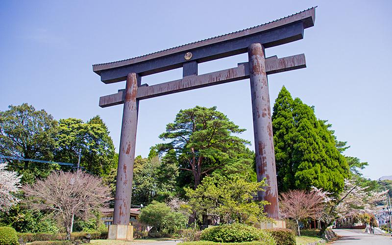 1988年(昭和63年)に建設され、笠木28m、柱の間隔16m、高さ22.4mの明神式の鳥居であり、西日本一と言われている。