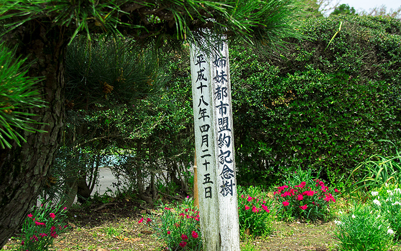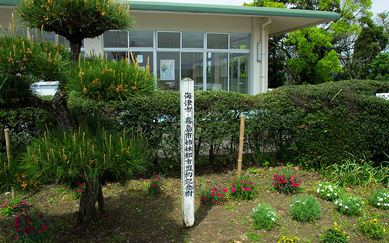木曽川治水工事の縁で、平成18年4月姉妹都市盟約を結んだ海津市から贈られた。隼人町住吉の天降川河川敷にも同じような松が数本植えられている。