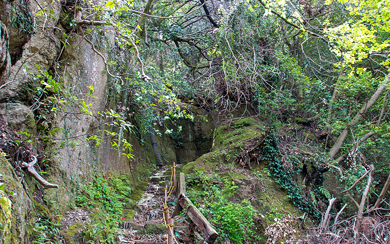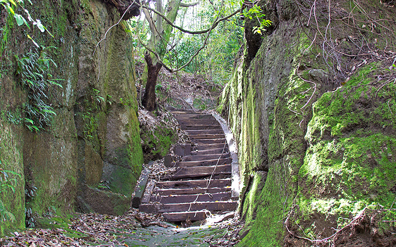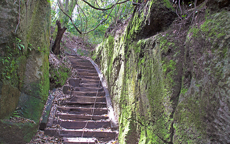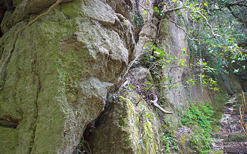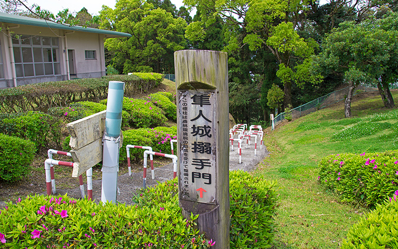 搦手門とは、大手門に対する裏門のことである。伊勢神社から登った所にある搦手門は、岩石をくりぬいて造り、門近くの絶壁にはつり橋をかけていた。いざという時にはつり橋を落とし、敵の侵攻を防ぐ工夫がなされていた。